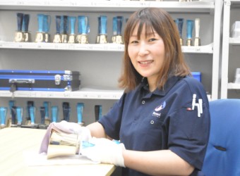 主に製品の検査や、仕上げ機械への製品着脱操作を行っています。また、現在ハンドベルの組み立てや、仕上げ作業にも携わり、ハンドベル世界大会では、展示ブースで接客もしました。色々な経験をさせてもらい、学ぶことへの意欲向上にもつながっています。